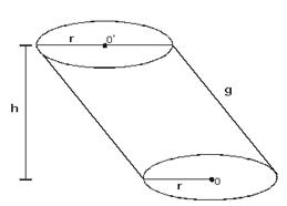 - circular oblíquo: quando as geratrizes são oblíquas às base. Nesse caso, a seção meridiana é um paralelogramo.