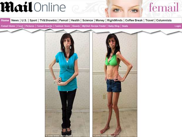 Com 26 kg distribuídos em pouco mais de 1,50 m, a norte-americana Lizzie Velasques, de 24 anos, parece sofrer um distúrbio alimentar à primeira vista. Mas há outra razão para que ela seja tão magra: uma síndrome rara que afeta apenas outras duas pessoas no mundo. Por mais que ela tente, é impossível ganhar peso e, como resultado, ela é obrigada  a comer até 60 pequenas refeições ao longo do dia. As informações são do Daily Mail.