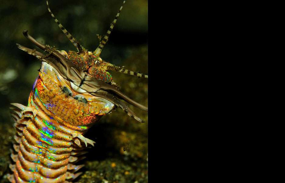 Embaixo de uma pedra, um dos funcionários encontrou um enorme verme, com 1,2 m de comprimento e grandes presas. O animal, da espécie Eunice aphroditoisde, e só foi retirado do local depois de ser atraído por pedaços de peixe utilizados como isca.